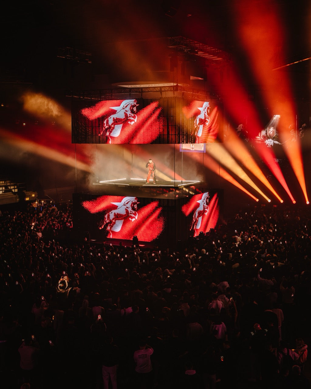 This performance at Volkswagen Arena is not merely a concert, but a modern faena. Faena refers to the final dance performed by the matador with the bull in a bullfight.
